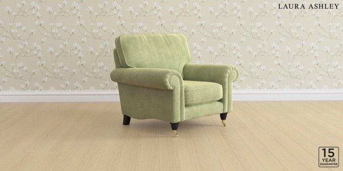 6.12.1 Buy Kingston by Laura Ashley Armchair Orla Pale Hedgerow Green Low Brass Castor - Black from the Next UK online shop Click here to use our accessible website