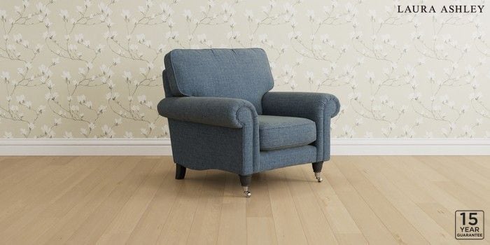 6.12.1 Buy Kingston by Laura Ashley Armchair Orla Seaspray Blue Low Chrome Castor - Black from the Next UK online shop Click here to use our accessible website