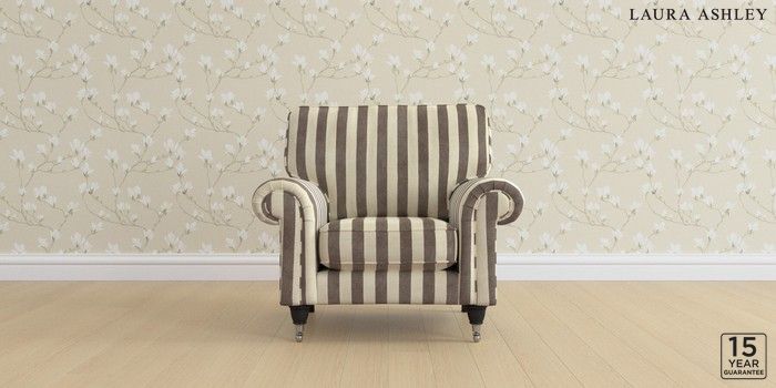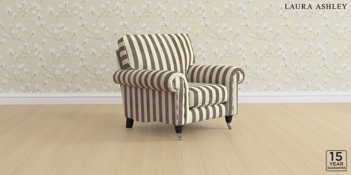 6.12.1 Buy Kingston by Laura Ashley Armchair Orla Stripe Dark Truffle Natural Low Chrome Castor - Black from the Next UK online shop Click here to use our accessible website