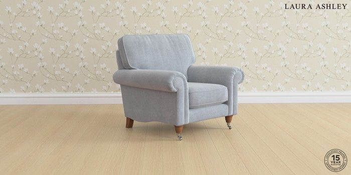 6.12.1 Buy Kingston by Laura Ashley Armchair Peyton Powder Blue Low Chrome Castor - Teak from the Next UK online shop Click here to use our accessible website