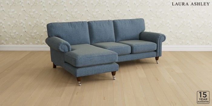 6.12.1 Buy Kingston by Laura Ashley Medium Sofa Chaise - Left Hand Orla Seaspray Blue Low Chrome Castor - Teak from the Next UK online shop Click here to use our accessible website