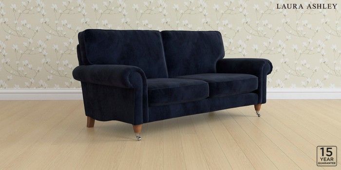 6.12.13 Buy Kingston by Laura Ashley 3 Seater Small Sofa Orla Midnight Navy Low Chrome Castor - Teak from the Next UK online shop Click here to use our accessible website
