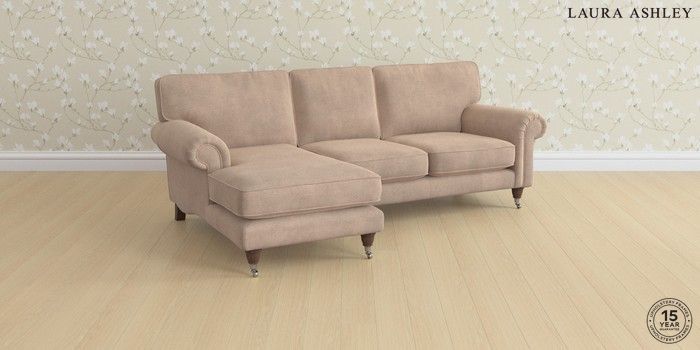 6.12.1 Buy Kingston by Laura Ashley Medium Sofa Chaise - Left Hand Ailsworth Mink Natural Low Chrome Castor - Chestnut from the Next UK online shop Click here to use our accessible website
