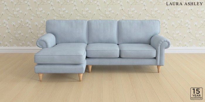 6.12.1 Buy Kingston by Laura Ashley Medium Sofa Chaise - Left Hand Ailsworth Newport Blue Low Turned - Light Oak from the Next UK online shop Click here to use our accessible website