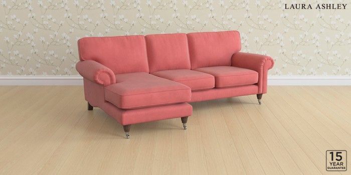 6.12.1 Buy Kingston by Laura Ashley Medium Sofa Chaise - Left Hand Ailsworth Old Rose Pink Low Chrome Castor - Chestnut from the Next UK online shop Click here to use our accessible website