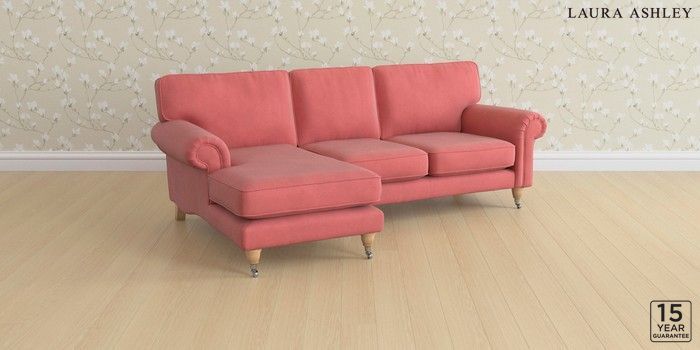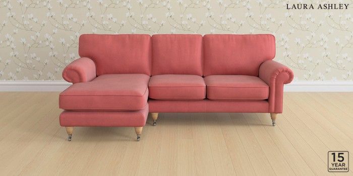 6.12.1 Buy Kingston by Laura Ashley Medium Sofa Chaise - Left Hand Ailsworth Old Rose Pink Low Chrome Castor - Light Oak from the Next UK online shop Click here to use our accessible website