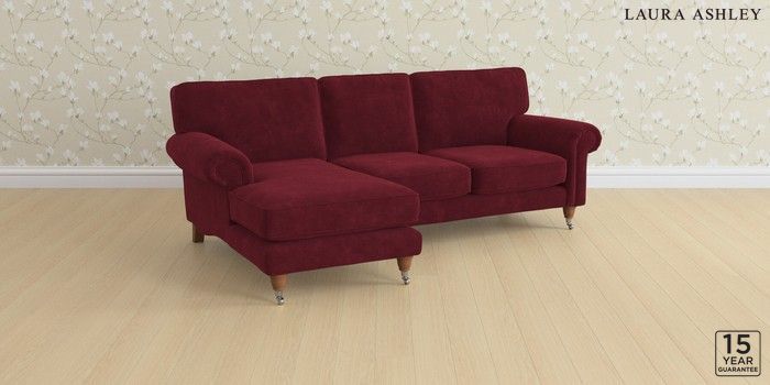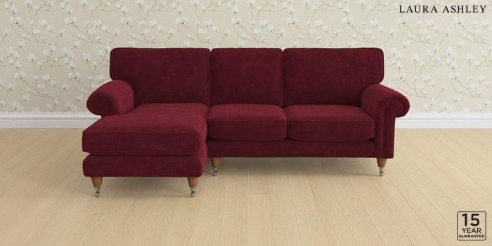 6.12.1 Buy Kingston by Laura Ashley Medium Sofa Chaise - Left Hand Alwyn Velvet Burgundy Red Low Chrome Castor - Teak from the Next UK online shop Click here to use our accessible website
