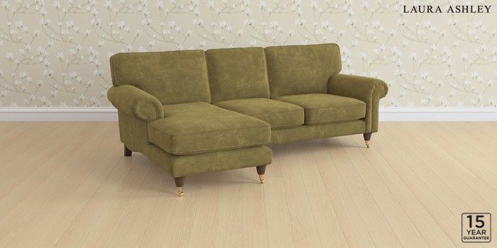 6.12.1 Buy Kingston by Laura Ashley Medium Sofa Chaise - Left Hand Alwyn Velvet Olive Green Low Brass Castor - Chestnut from the Next UK online shop Click here to use our accessible website