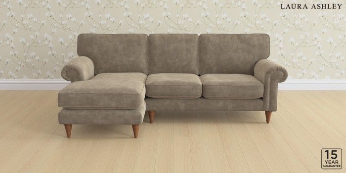 6.12.1 Buy Kingston by Laura Ashley Medium Sofa Chaise - Left Hand Alwyn Velvet Truffle Natural Low Turned - Teak from the Next UK online shop Click here to use our accessible website