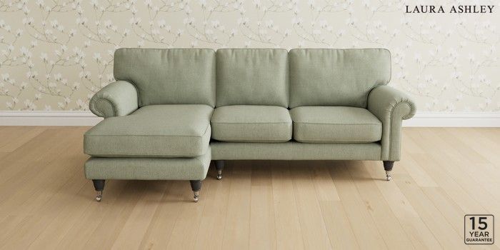 6.12.1 Buy Kingston by Laura Ashley Medium Sofa Chaise - Left Hand Anneliese Sage Green Low Brass Castor - Black from the Next UK online shop Click here to use our accessible website