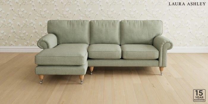6.12.1 Buy Kingston by Laura Ashley Medium Sofa Chaise - Left Hand Anneliese Sage Green Low Brass Castor - Light Oak from the Next UK online shop Click here to use our accessible website
