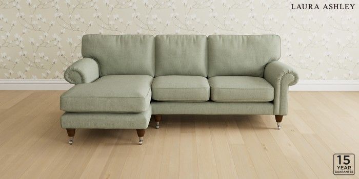 6.12.1 Buy Kingston by Laura Ashley Medium Sofa Chaise - Left Hand Anneliese Sage Green Low Chrome Castor - Teak from the Next UK online shop Click here to use our accessible website