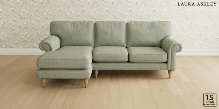 6.12.1 Buy Kingston by Laura Ashley Medium Sofa Chaise - Left Hand Anneliese Sage Green Low Turned - Light Oak from the Next UK online shop Click here to use our accessible website