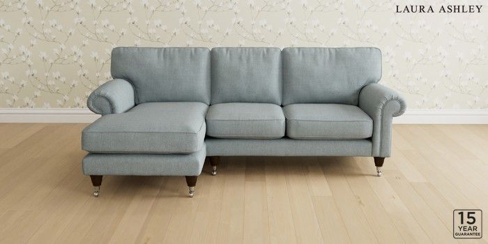 6.12.1 Buy Kingston by Laura Ashley Medium Sofa Chaise - Left Hand Anneliese Seaspray Blue Low Chrome Castor - Chestnut from the Next UK online shop Click here to use our accessible website