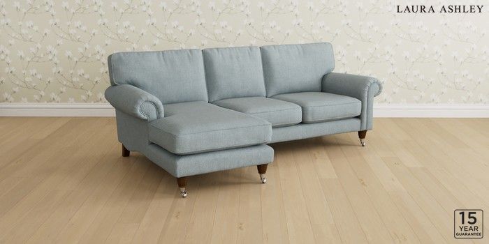 6.12.1 Buy Kingston by Laura Ashley Medium Sofa Chaise - Left Hand Anneliese Seaspray Blue Low Chrome Castor - Teak from the Next UK online shop Click here to use our accessible website
