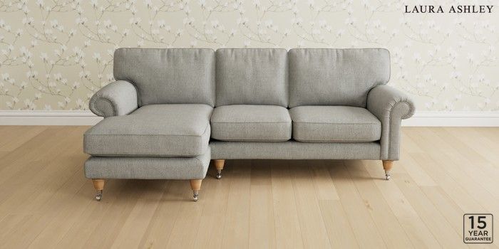 6.12.1 Buy Kingston by Laura Ashley Medium Sofa Chaise - Left Hand Anneliese Steel Grey Low Chrome Castor - Light Oak from the Next UK online shop Click here to use our accessible website