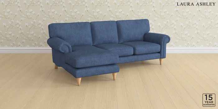 6.12.1 Buy Kingston by Laura Ashley Medium Sofa Chaise - Left Hand Bainton Midnight Navy Low Turned - Light Oak from the Next UK online shop Click here to use our accessible website
