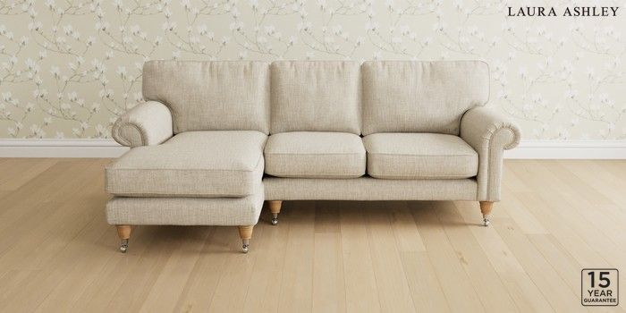 6.12.1 Buy Kingston by Laura Ashley Medium Sofa Chaise - Left Hand Bainton Natural Low Brass Castor - Light Oak from the Next UK online shop Click here to use our accessible website