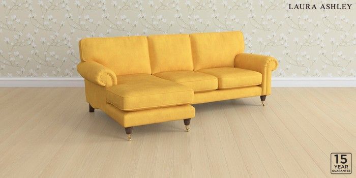 6.12.1 Buy Kingston by Laura Ashley Medium Sofa Chaise - Left Hand Bainton Ochre Yellow Low Brass Castor - Chestnut from the Next UK online shop Click here to use our accessible website