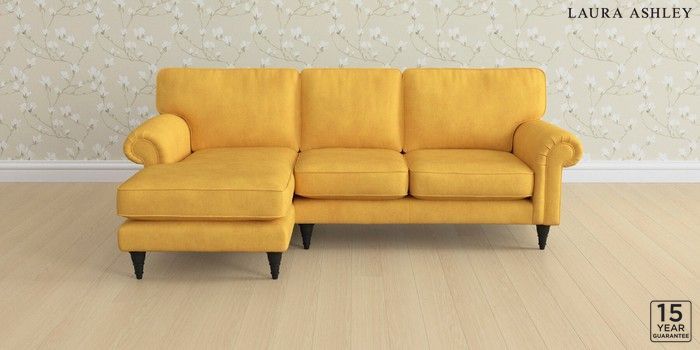 6.12.1 Buy Kingston by Laura Ashley Medium Sofa Chaise - Left Hand Bainton Ochre Yellow Low Turned - Black from the Next UK online shop Click here to use our accessible website