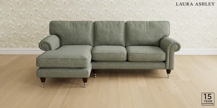 6.12.1 Buy Kingston by Laura Ashley Medium Sofa Chaise - Left Hand Bainton Sage Green Low Brass Castor - Chestnut from the Next UK online shop Click here to use our accessible website