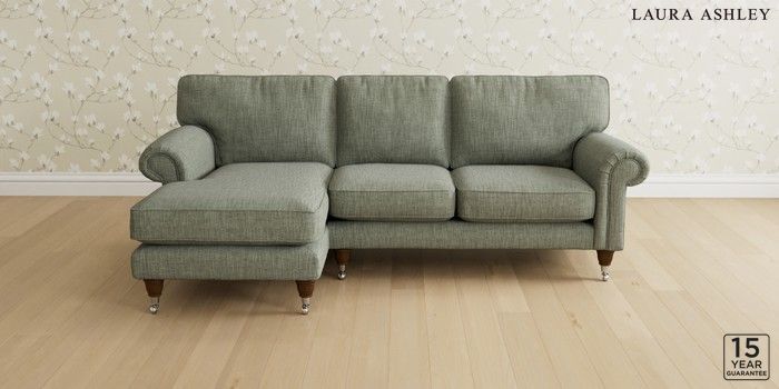 6.12.1 Buy Kingston by Laura Ashley Medium Sofa Chaise - Left Hand Bainton Sage Green Low Chrome Castor - Teak from the Next UK online shop Click here to use our accessible website