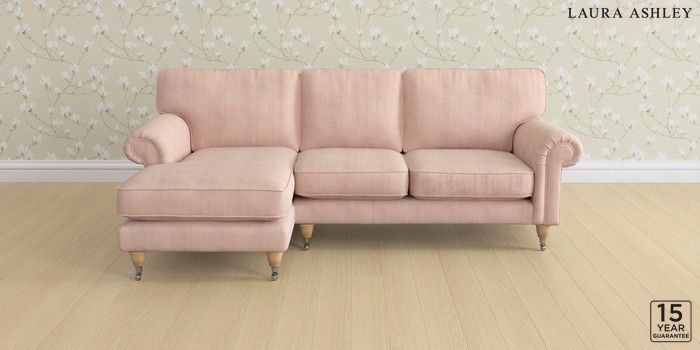 6.12.1 Buy Kingston by Laura Ashley Medium Sofa Chaise - Left Hand Edwin Chenille Blush Pink Low Chrome Castor - Light Oak from the Next UK online shop Click here to use our accessible website