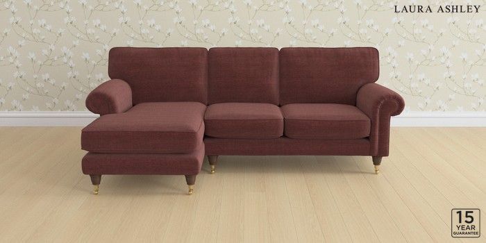 6.12.1 Buy Kingston by Laura Ashley Medium Sofa Chaise - Left Hand Edwin Chenille Burgundy Red Low Brass Castor - Chestnut from the Next UK online shop Click here to use our accessible website