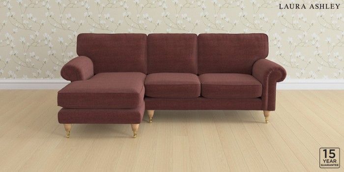 6.12.1 Buy Kingston by Laura Ashley Medium Sofa Chaise - Left Hand Edwin Chenille Burgundy Red Low Brass Castor - Light Oak from the Next UK online shop Click here to use our accessible website