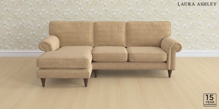6.12.1 Buy Kingston by Laura Ashley Medium Sofa Chaise - Left Hand Edwin Chenille Gold Natural Low Turned - Chestnut from the Next UK online shop Click here to use our accessible website
