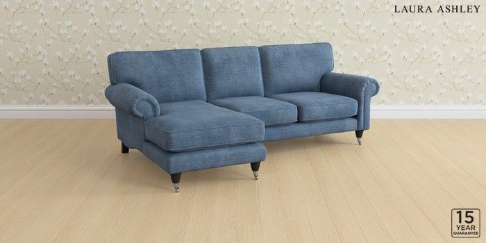 6.12.1 Buy Kingston by Laura Ashley Medium Sofa Chaise - Left Hand Edwin Chenille Seaspray Blue Low Chrome Castor - Black from the Next UK online shop Click here to use our accessible website