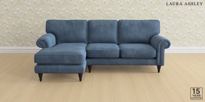 6.12.1 Buy Kingston by Laura Ashley Medium Sofa Chaise - Left Hand Edwin Chenille Seaspray Blue Low Turned - Black from the Next UK online shop Click here to use our accessible website