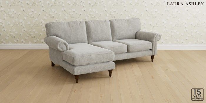 6.12.1 Buy Kingston by Laura Ashley Medium Sofa Chaise - Left Hand Edwin Chenille Silver Grey Low Turned - Teak from the Next UK online shop Click here to use our accessible website