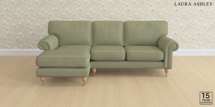 6.12.1 Buy Kingston by Laura Ashley Medium Sofa Chaise - Left Hand Edwin Herringbone Hedgerow Green Low Brass Castor - Light Oak from the Next UK online shop Click here to use our accessible website