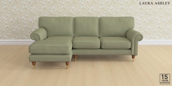 6.12.1 Buy Kingston by Laura Ashley Medium Sofa Chaise - Left Hand Edwin Herringbone Hedgerow Green Low Brass Castor - Teak from the Next UK online shop Click here to use our accessible website