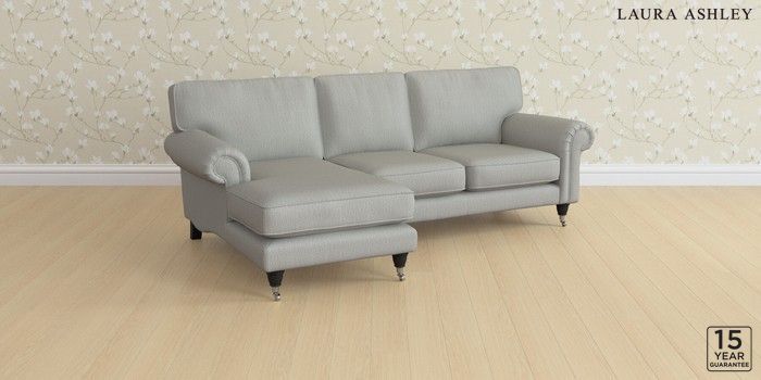 6.12.1 Buy Kingston by Laura Ashley Medium Sofa Chaise - Left Hand Edwin Herringbone Pale Steel Grey Low Chrome Castor - Black from the Next UK online shop Click here to use our accessible website