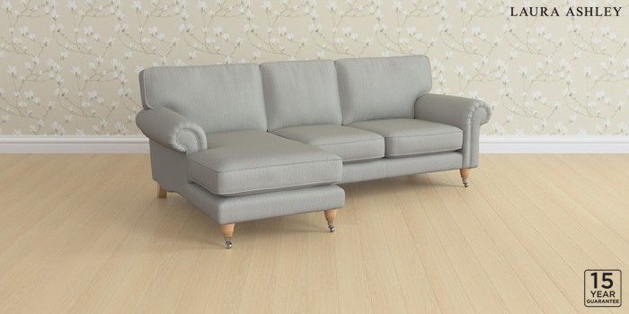 6.12.1 Buy Kingston by Laura Ashley Medium Sofa Chaise - Left Hand Edwin Herringbone Pale Steel Grey Low Chrome Castor - Light Oak from the Next UK online shop Click here to use our accessible website
