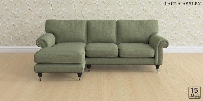 6.12.1 Buy Kingston by Laura Ashley Medium Sofa Chaise - Left Hand Harley Moss Green Low Chrome Castor - Black from the Next UK online shop Click here to use our accessible website