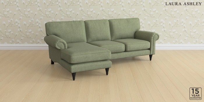 6.12.1 Buy Kingston by Laura Ashley Medium Sofa Chaise - Left Hand Harley Moss Green Low Turned - Black from the Next UK online shop Click here to use our accessible website