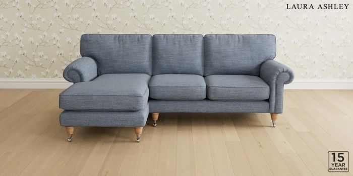 6.12.1 Buy Kingston by Laura Ashley Medium Sofa Chaise - Left Hand Harley Seaspray Blue Low Chrome Castor - Light Oak from the Next UK online shop Click here to use our accessible website
