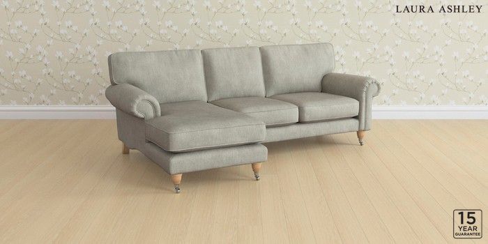 6.12.1 Buy Kingston by Laura Ashley Medium Sofa Chaise - Left Hand Bainton Pale Steel Grey Low Chrome Castor - Light Oak from the Next UK online shop Click here to use our accessible website