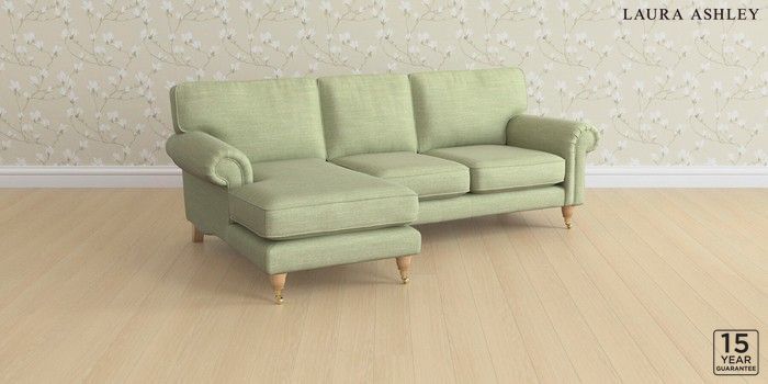 6.12.1 Buy Kingston by Laura Ashley Medium Sofa Chaise - Left Hand Kinsham Hedgerow Green Low Brass Castor - Light Oak from the Next UK online shop Click here to use our accessible website