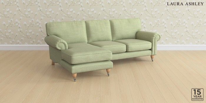 6.12.1 Buy Kingston by Laura Ashley Medium Sofa Chaise - Left Hand Kinsham Hedgerow Green Low Chrome Castor - Light Oak from the Next UK online shop Click here to use our accessible website