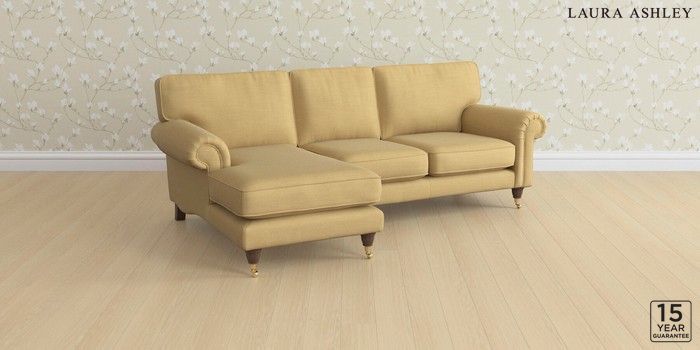6.12.1 Buy Kingston by Laura Ashley Medium Sofa Chaise - Left Hand Kinsham Ochre Yellow Low Brass Castor - Chestnut from the Next UK online shop Click here to use our accessible website