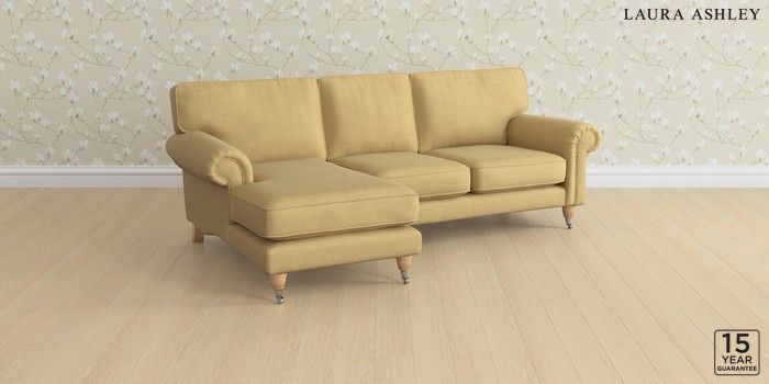 6.12.1 Buy Kingston by Laura Ashley Medium Sofa Chaise - Left Hand Kinsham Ochre Yellow Low Chrome Castor - Light Oak from the Next UK online shop Click here to use our accessible website