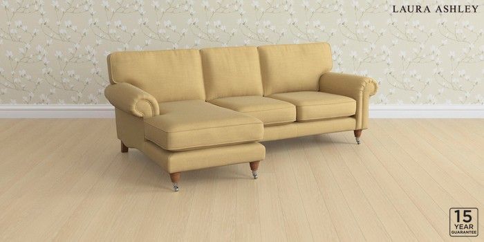 6.12.1 Buy Kingston by Laura Ashley Medium Sofa Chaise - Left Hand Kinsham Ochre Yellow Low Chrome Castor - Teak from the Next UK online shop Click here to use our accessible website