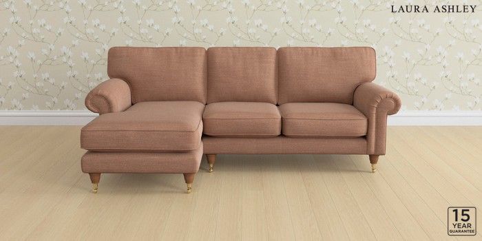 6.12.1 Buy Kingston by Laura Ashley Medium Sofa Chaise - Left Hand Kinsham Rust Orange Low Brass Castor - Teak from the Next UK online shop Click here to use our accessible website