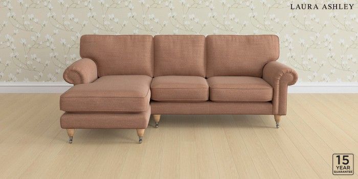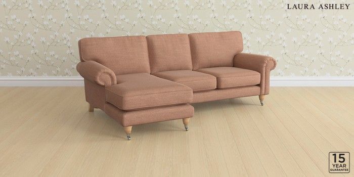6.12.1 Buy Kingston by Laura Ashley Medium Sofa Chaise - Left Hand Kinsham Rust Orange Low Chrome Castor - Light Oak from the Next UK online shop Click here to use our accessible website