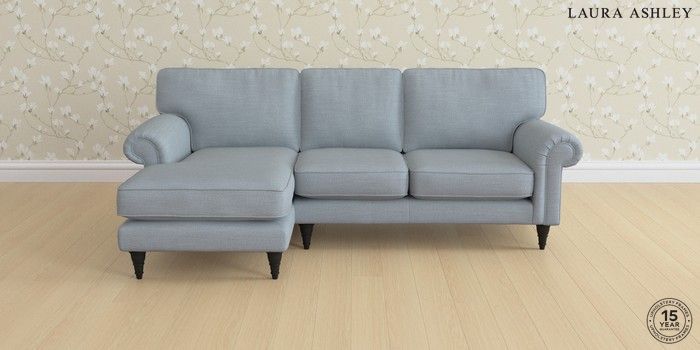 6.12.1 Buy Kingston by Laura Ashley Medium Sofa Chaise - Left Hand Kinsham Seaspray Blue Low Turned - Black from the Next UK online shop Click here to use our accessible website