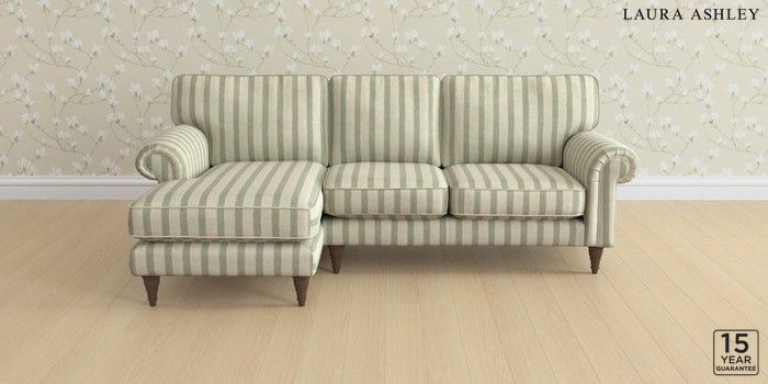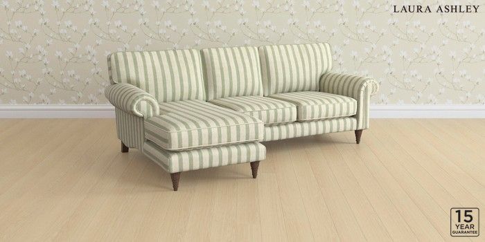 6.12.1 Buy Kingston by Laura Ashley Medium Sofa Chaise - Left Hand Kinsham Stripe Hedgerow Green Low Turned - Chestnut from the Next UK online shop Click here to use our accessible website